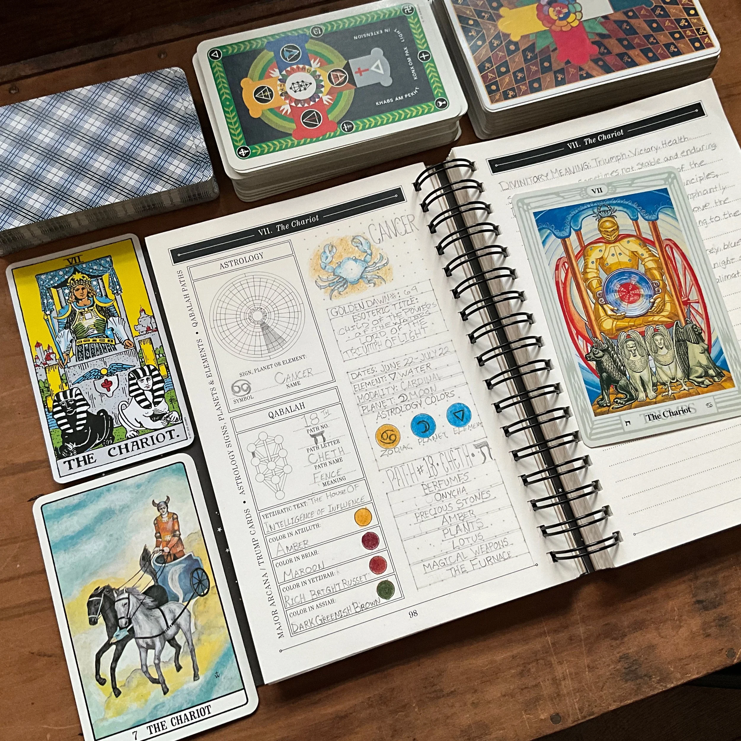 For those using The Great Work Book to log their tarot studies, this is an excellent opportunity to add details about The Chariot. Example pages featuring The Chariot are included at the end of this article.